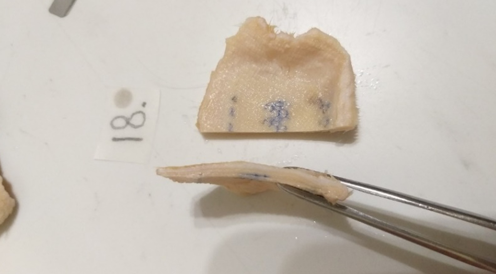 Fig. 2. Preparation of a specimen from a harvested flap.