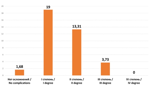 Нет осложнений / No complications | I степень / I degree | II степень / II degree | III степень / III degree | IV степень / IV degree |