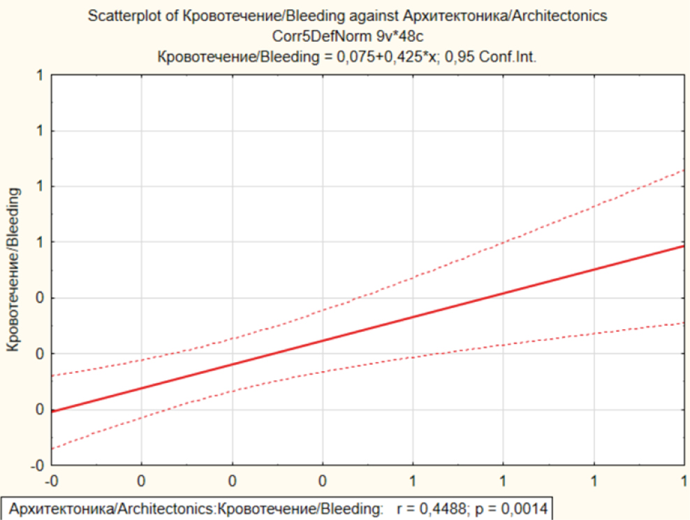 Fig. 8. Scatter plot for the relationship of indicators archangiotectonics and bleeding.